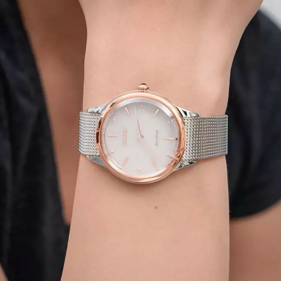ساعت مچی سیتیزن مدل EM1156-80X محصول کشور ژاپن است. از لحاظ جنس و تکنولوژی جزو بهترین ساعت های روز دنیا به شمار می آید.