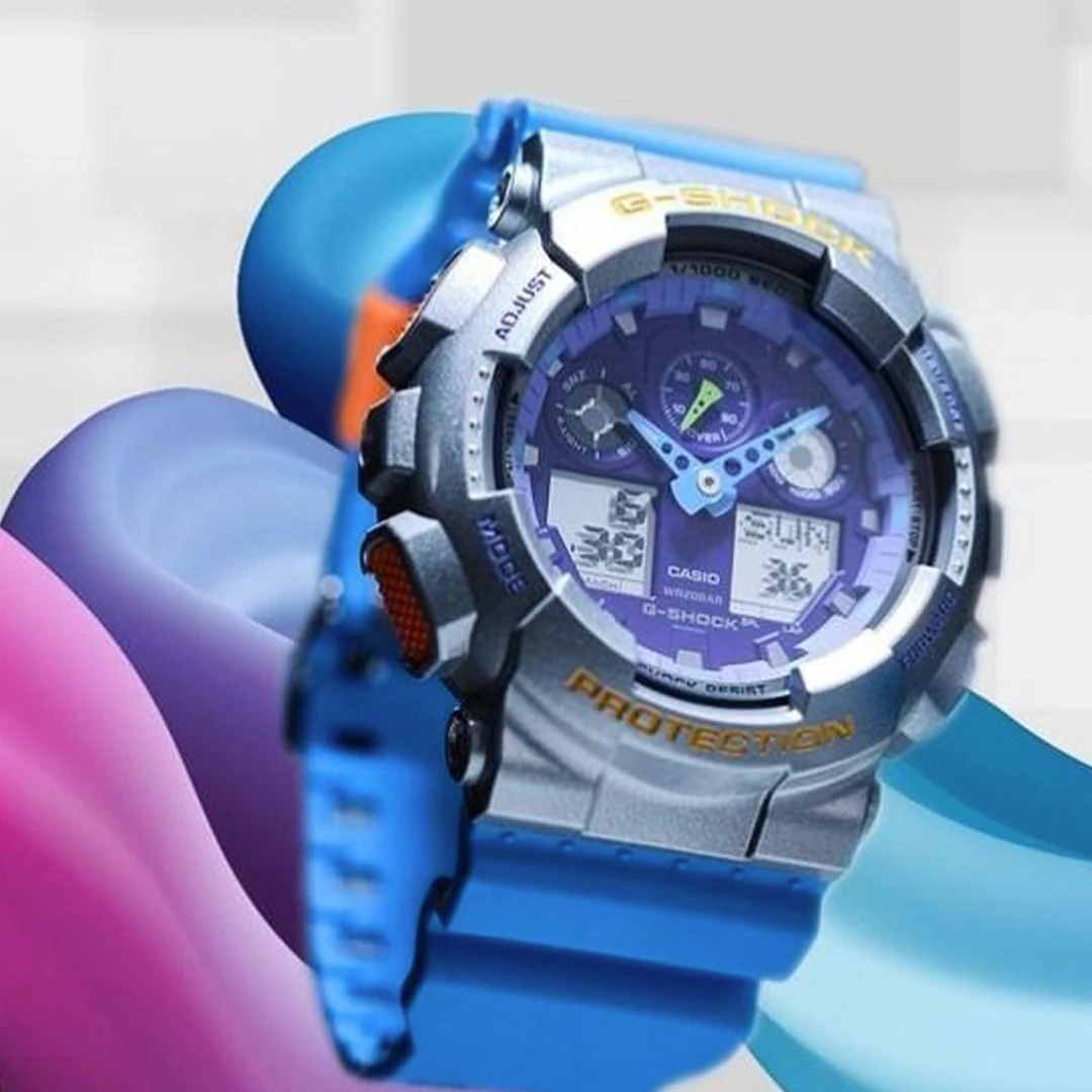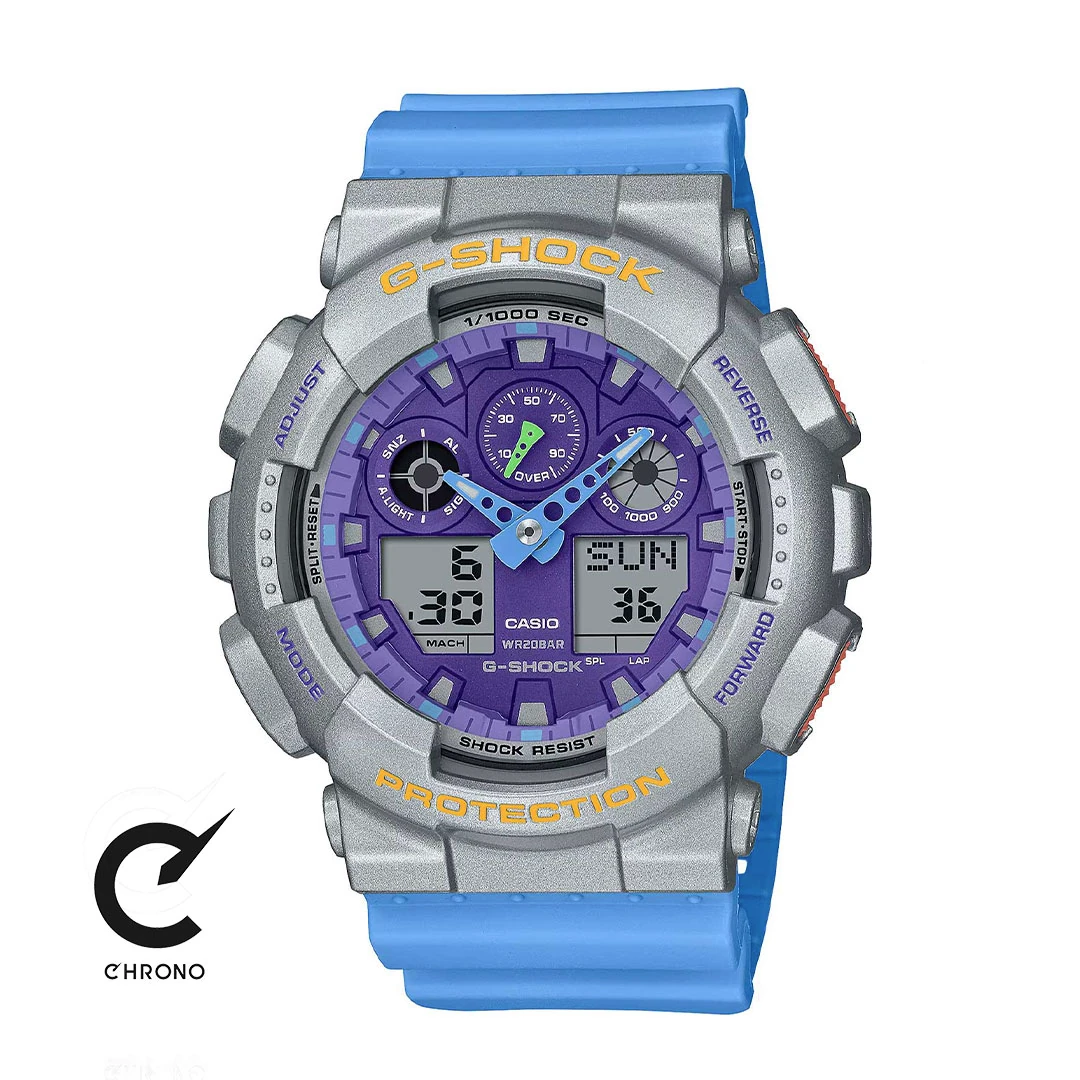 ساعت G-SHOCK مدل GA-100EU-8A2 تولید برند ژاپنی کاسیو می باشد. این ساعت ها با کیفیت برتر مناسب برای فعالیت های روزمره، ورزشی و طبیعت گردی است.