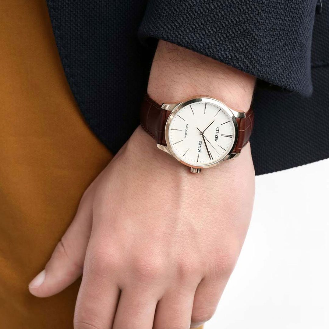 ساعت مچی سیتیزن مدل NH8353-18A ساعتی مناسب برای آقایان بوده و با توجه به جنس بند چرم طبیعی مناسب برای استفاده رسمی,روزمره است. باتوجه به مقاومت در آب ۵۰ متر این ساعت مناسب برای شست و شوی روزمره و استحمام است.