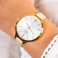 ساعت های زنانه: مجموعه زنانه شامل طرحهای شیک و شیک است، با گزینههایی که عناصر تزئینی مانند کریستالها و صفحههای مروارید را در خود جای داده است.