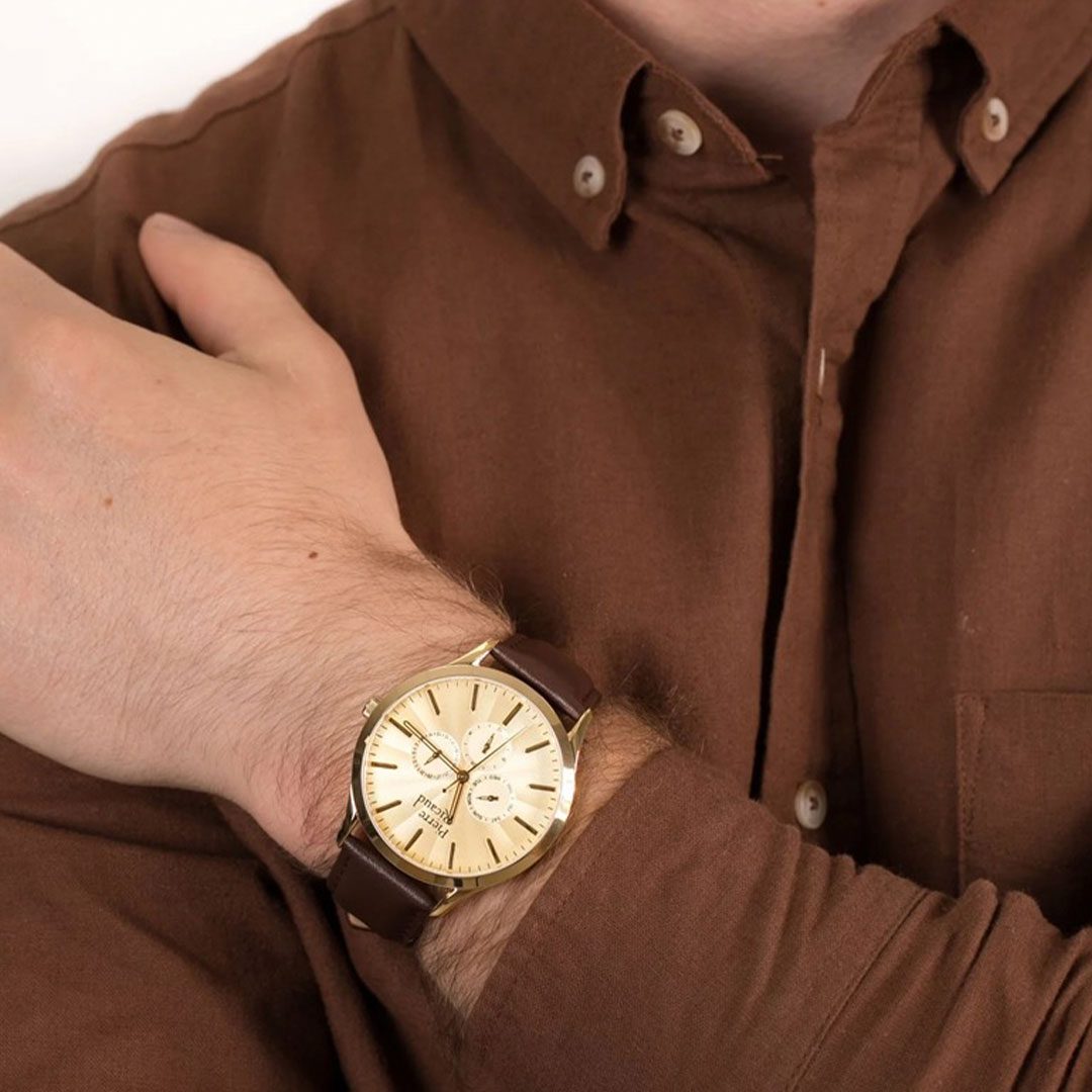 ساعت های مردانه: این ساعتها شامل ساعتهای لباس کلاسیک، کرنوگرافهای اسپرت و مدلهای روزمره معمولی است. این طرحها اغلب دارای خطوط تمیز، صفحههای مینیمالیستی و قابلیتهای کاربردی مانند پنجرههای تاریخ و مقاومت در برابر آب هستند.