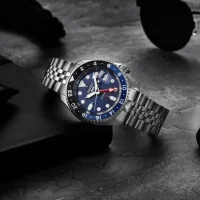 GMT, دارای ۲۴ قطعه جواهر کار شده در موتور, دارای قاب چرخشی یک طرفه, عقربه شب نما, نمایش موتور ساعت